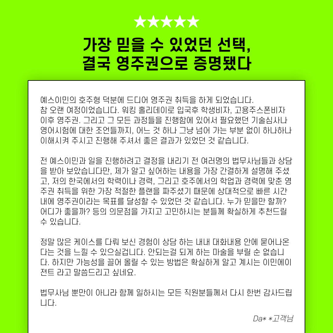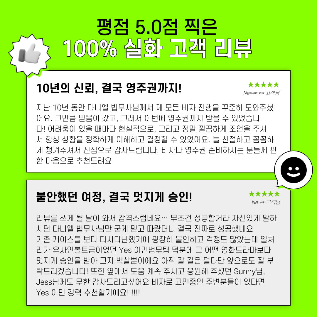 이미 비자를 받은 회원님들이 말해주는 예스 이민과 함께 할 이유!🔗